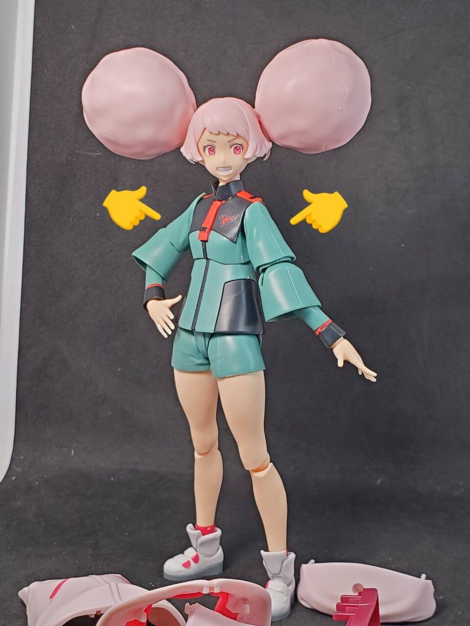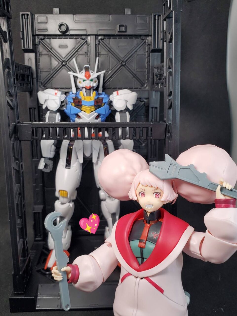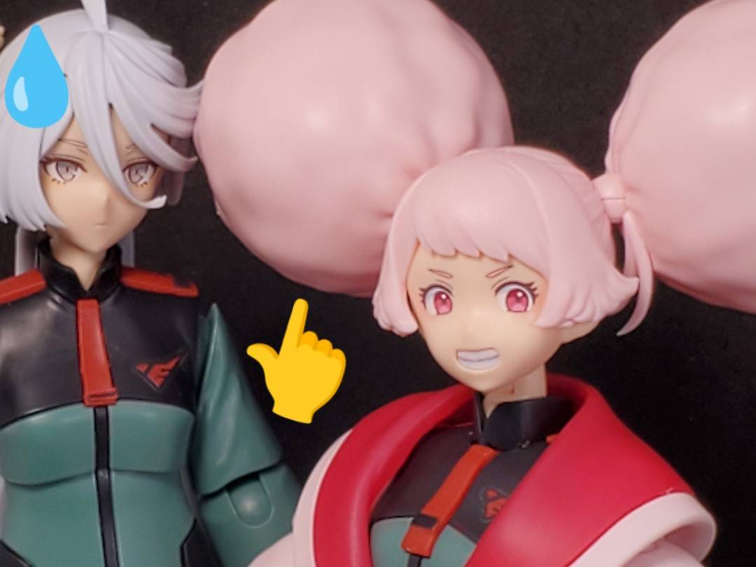 パーカーを脱いだ制服姿にするには「ミオリネ・レンブラン」や「プレミアムバンダイ限定、制服姿のスレッタ・マーキュリー」が必要なので、合わせて用意が必要です