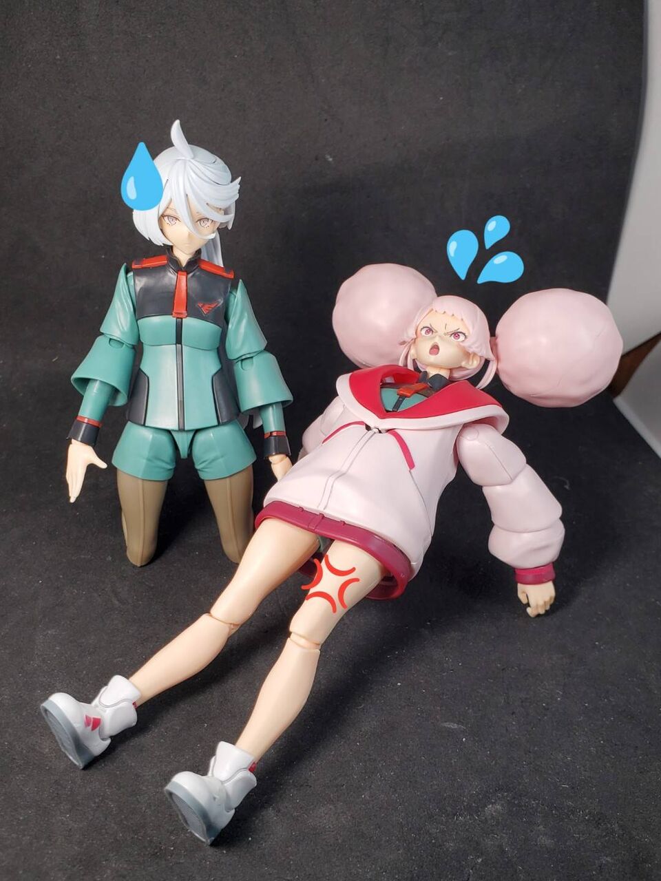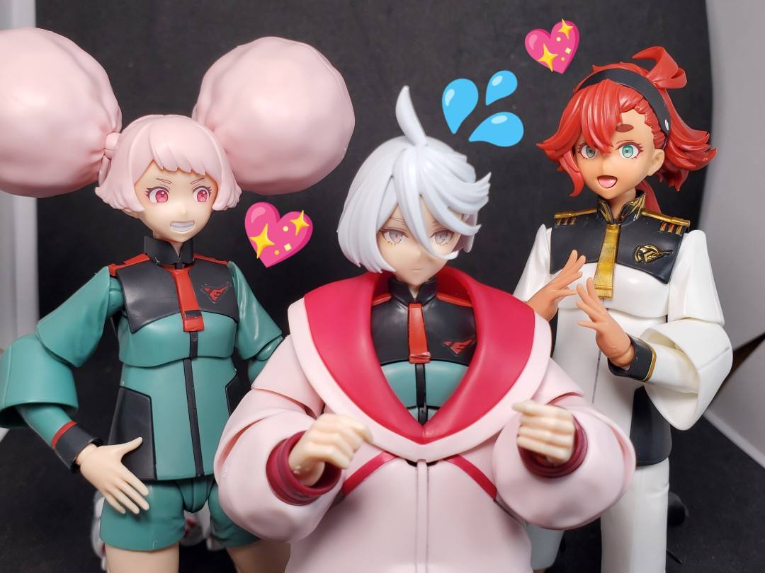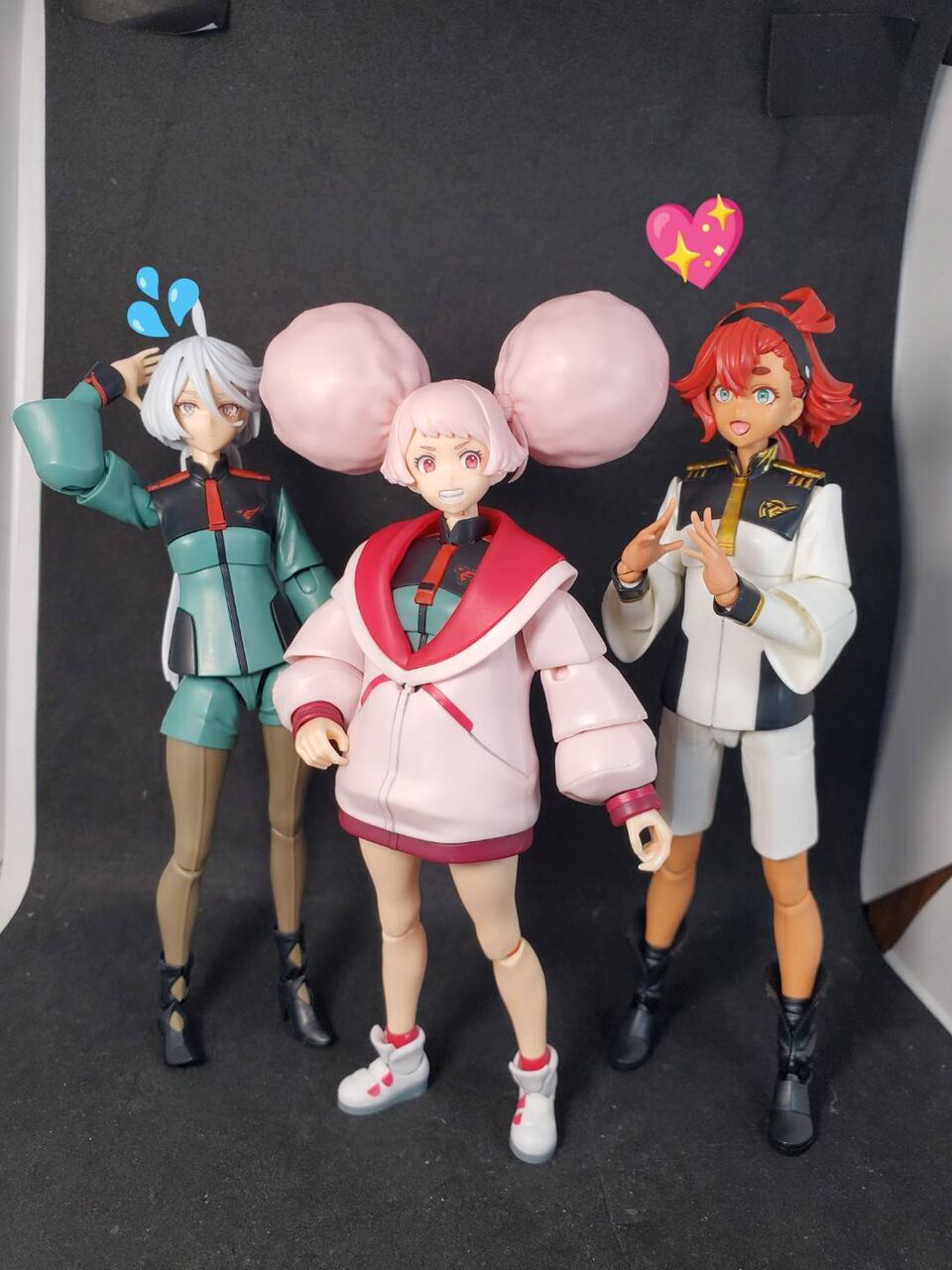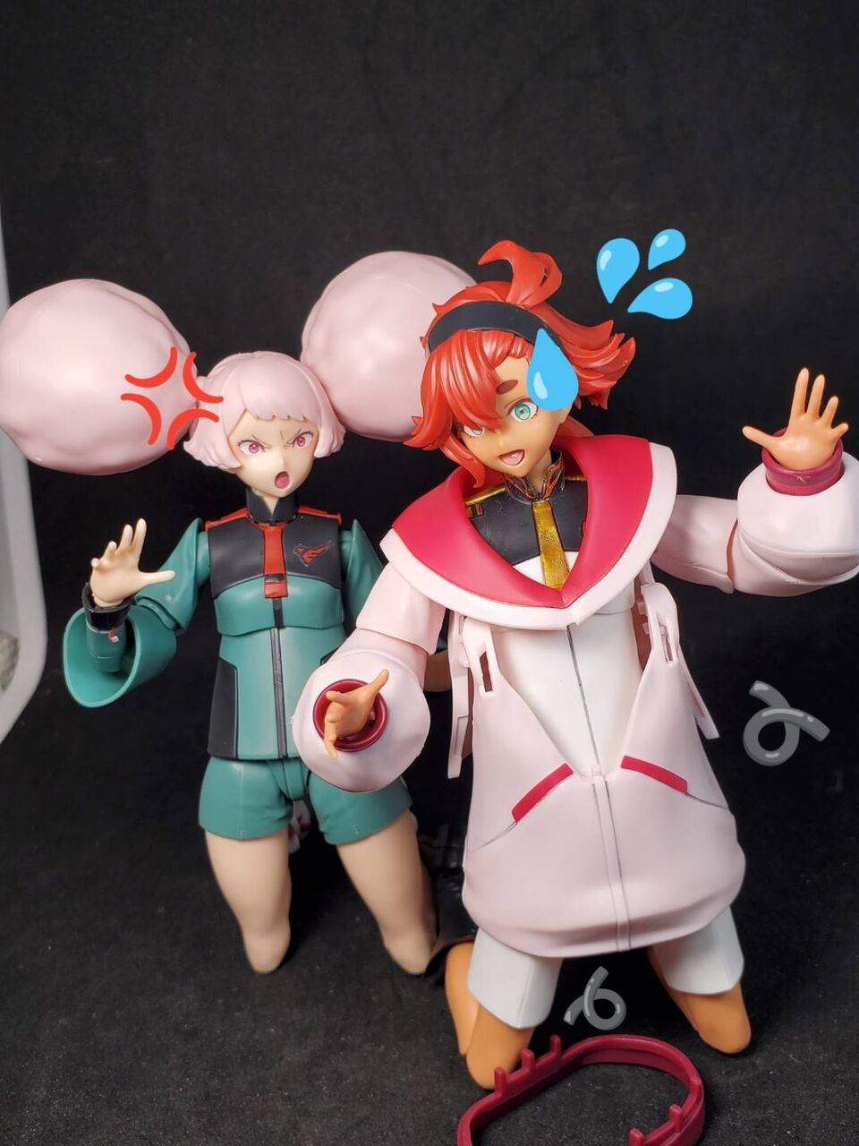 パーカーを脱いだ制服姿にするには「ミオリネ・レンブラン」や「プレミアムバンダイ限定、制服姿のスレッタ・マーキュリー」が必要なので、合わせて用意が必要です