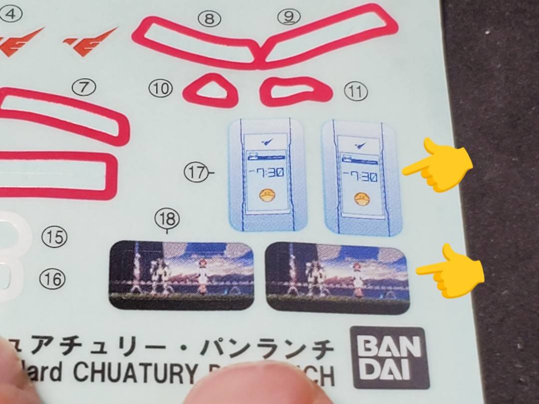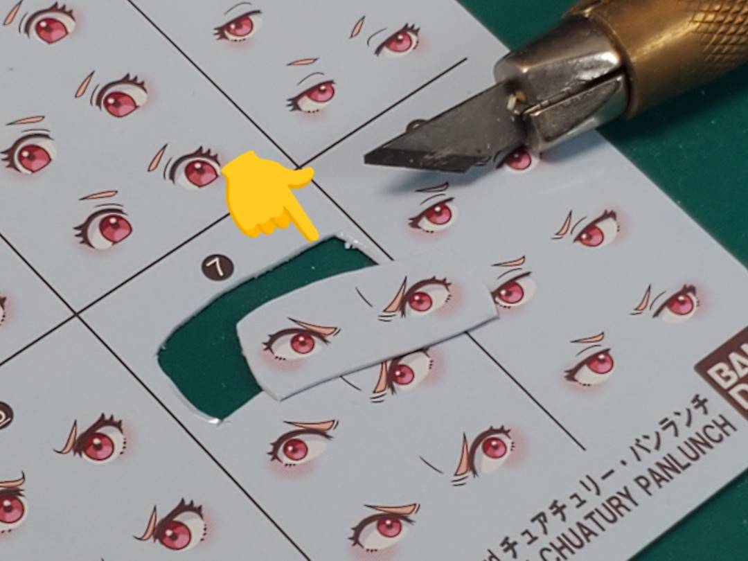 アイデカールが剥がれるようになったら、フェイスパーツに移して位置調整を行います