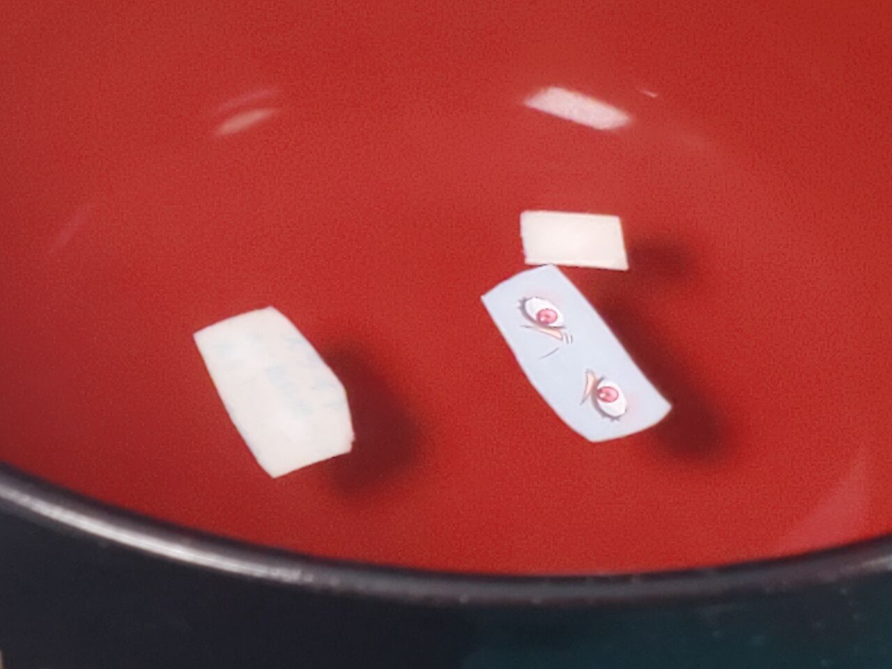 選んだ表情を決めたら水に濡らしてアイデカールを台紙から剥がせるようにします
