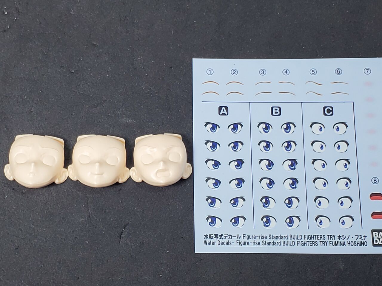 ・印字無しフェイスパーツ 3種類(画像はデカール貼り付け済み)