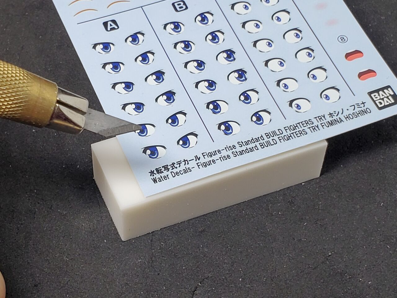 今回は、前回のフミナと差別化して「目線違いデカール」を貼り付けています