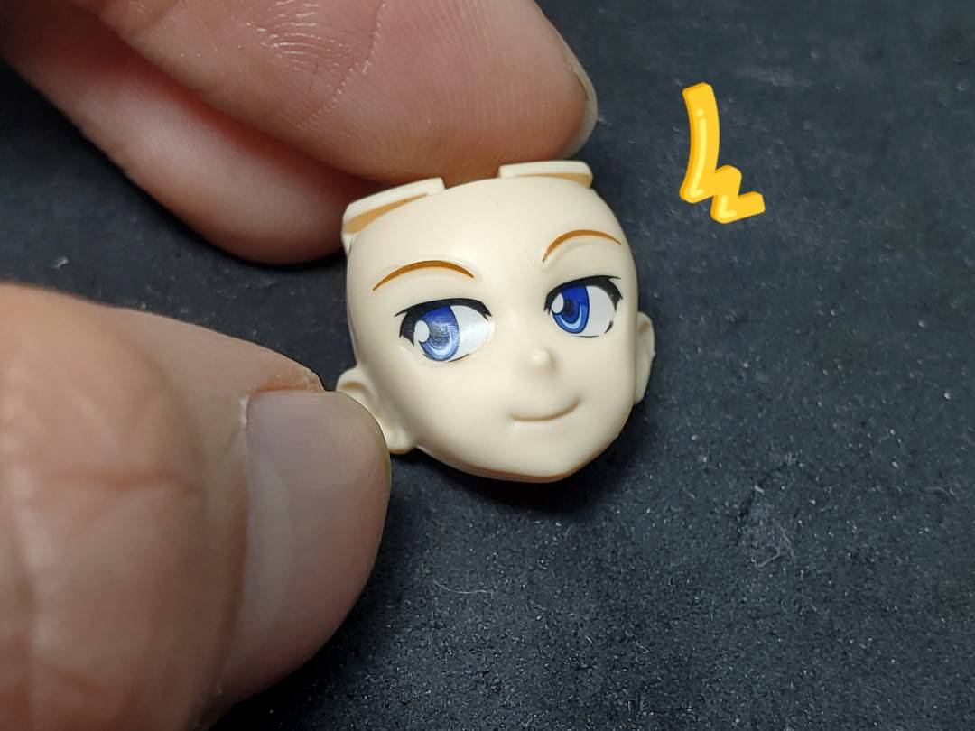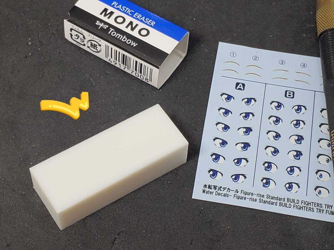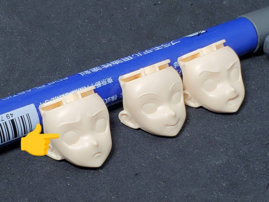 デカール貼る目印は、フェイスパーツの凹みに合わせれば大丈夫です