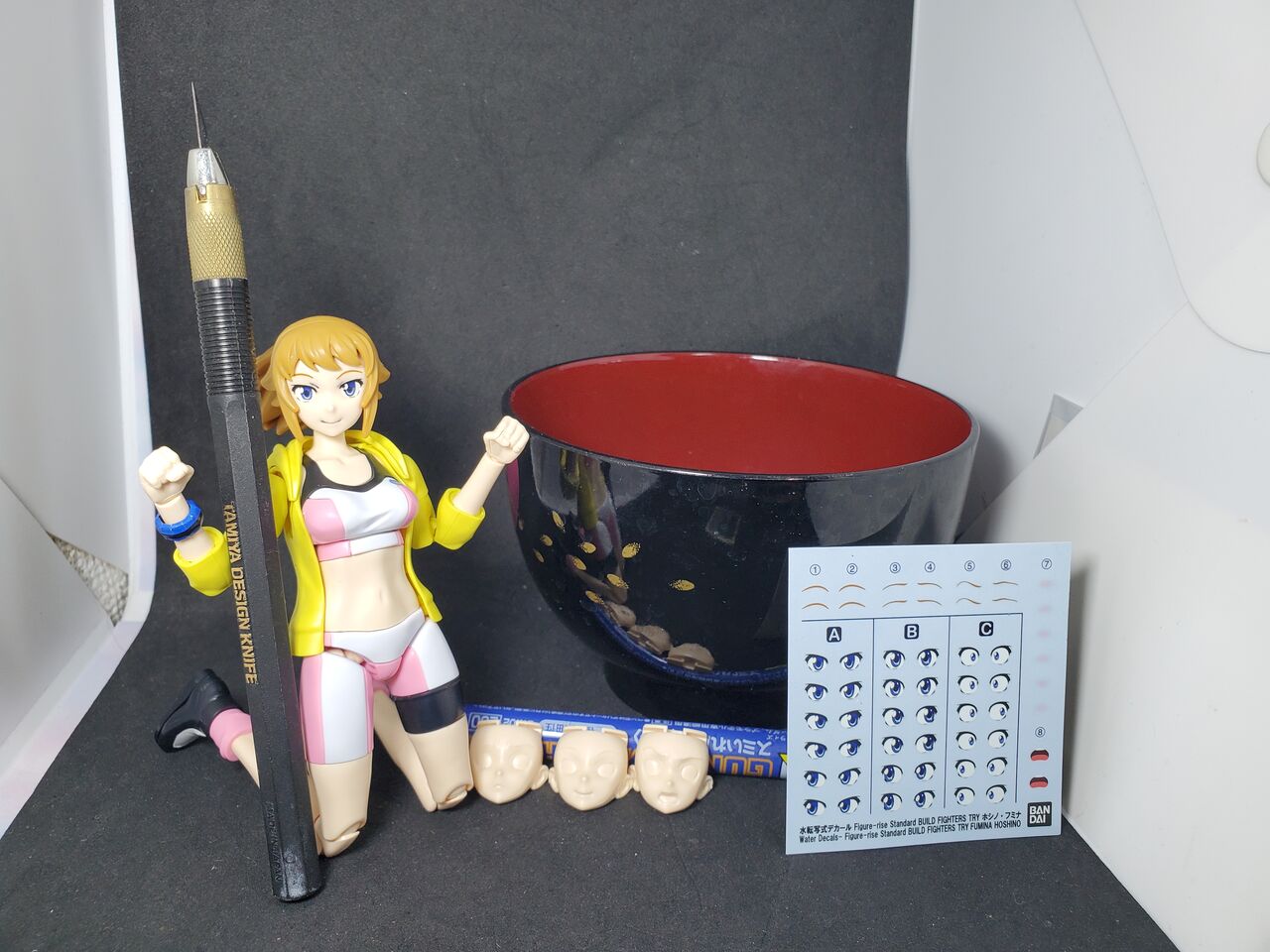デカール貼る為にデザインナイフ、浸す用の水が必要です