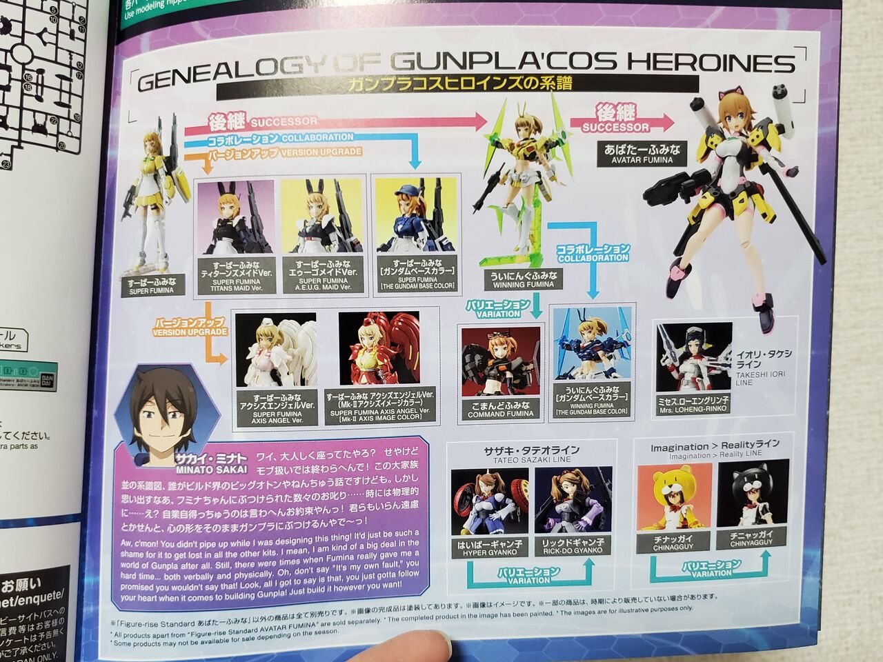 付属の説明書には「歴代フミナ」も記載されており、バンダイの美少女プラモの歩みを見ることができます