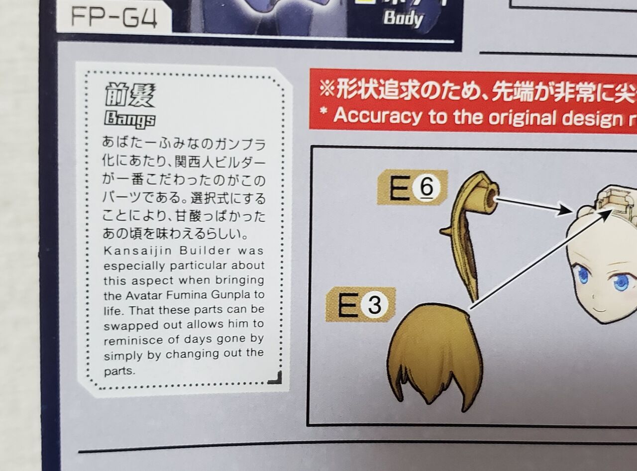 前髪パーツが差し替えできる拘りも説明書に記載されてます