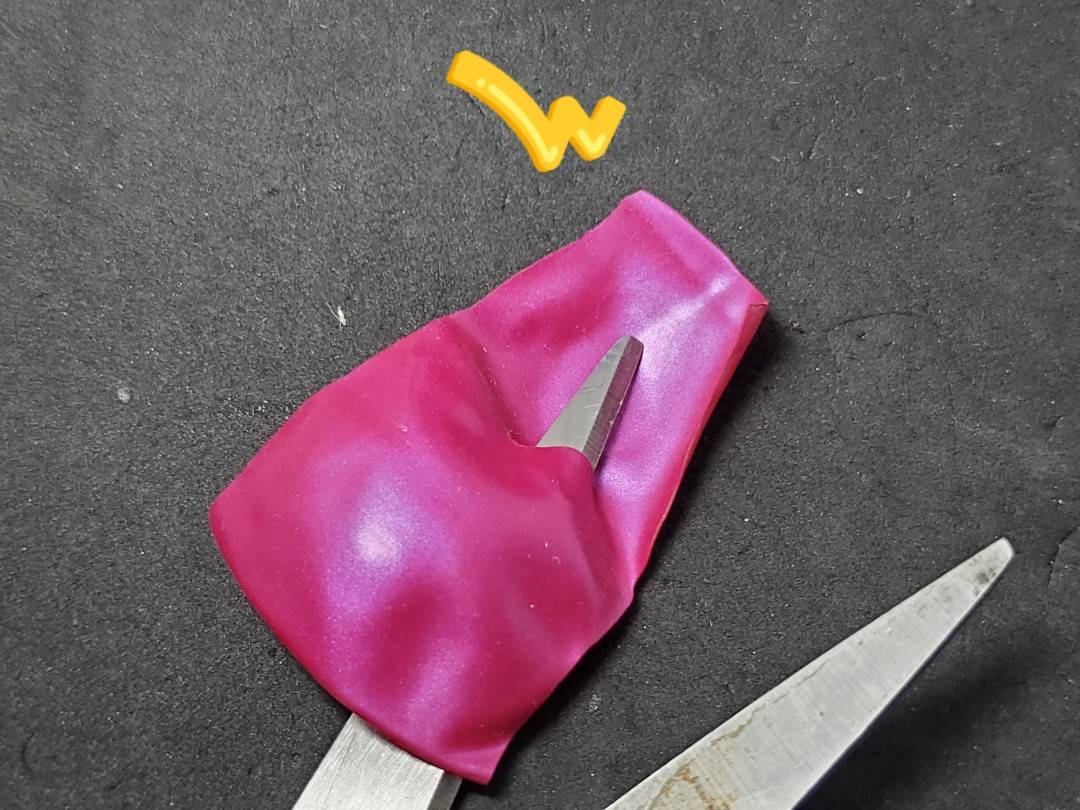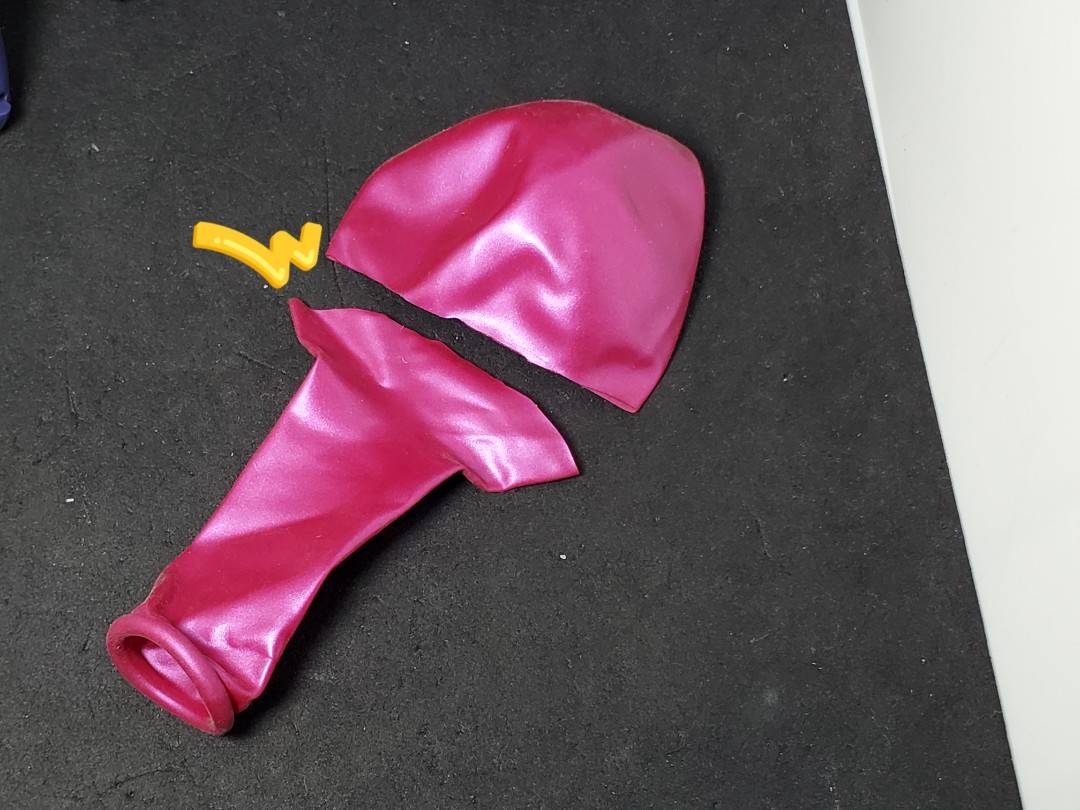 加工には、風船の膨らみ箇所の残った部分を利用します