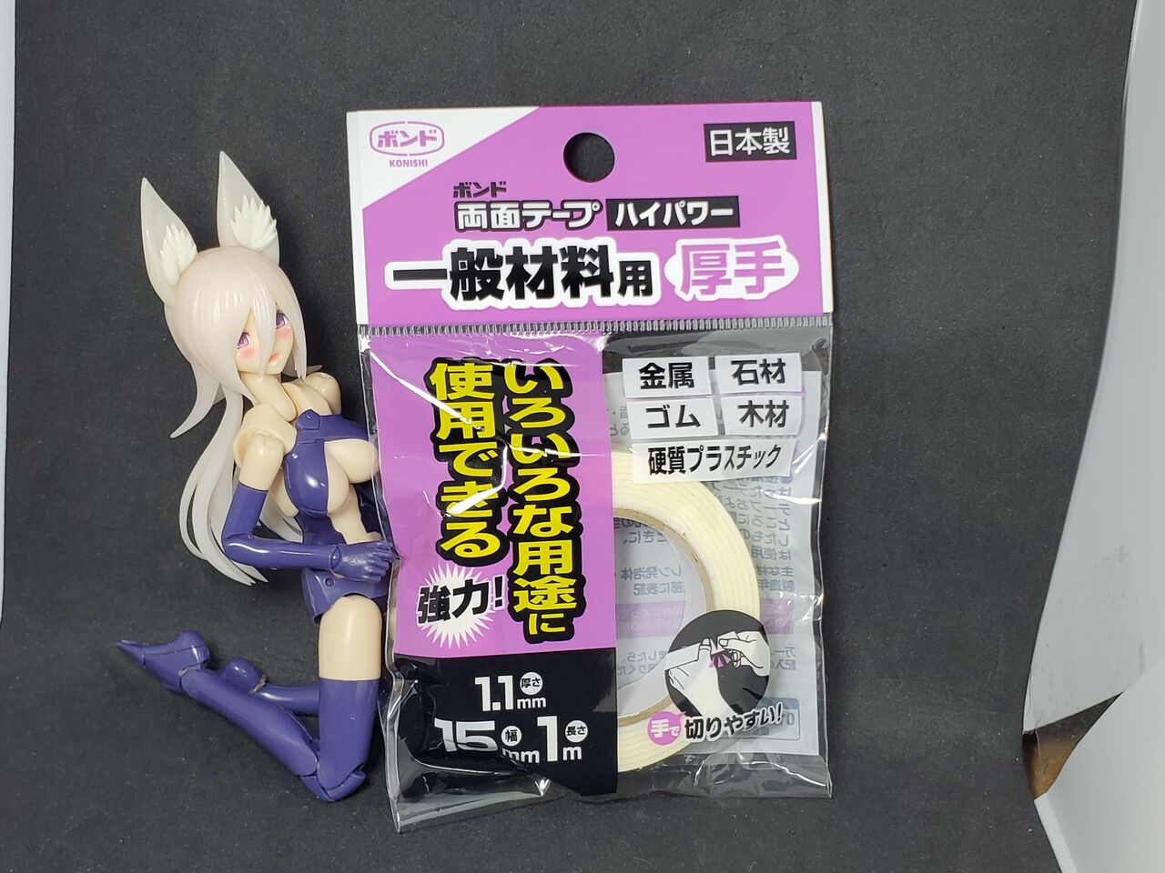 今回、えりの固定には100円ショップで手に入る「樹脂にも使える両面テープ」を使っています