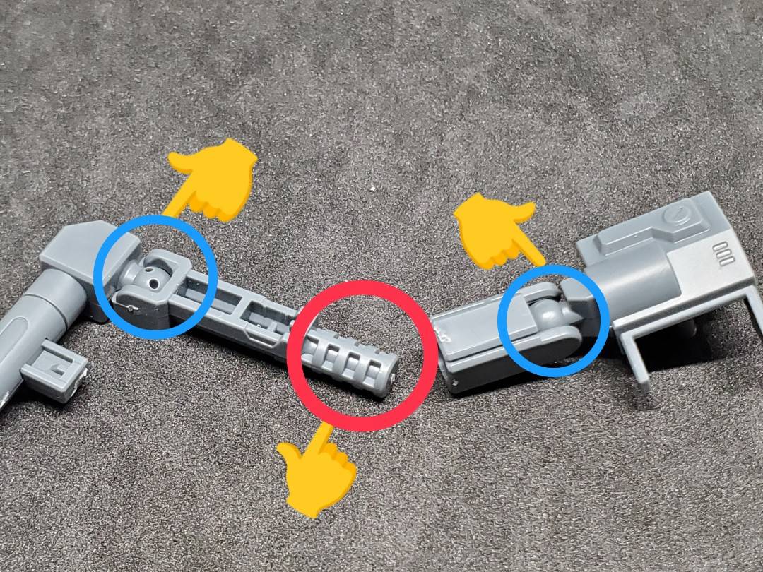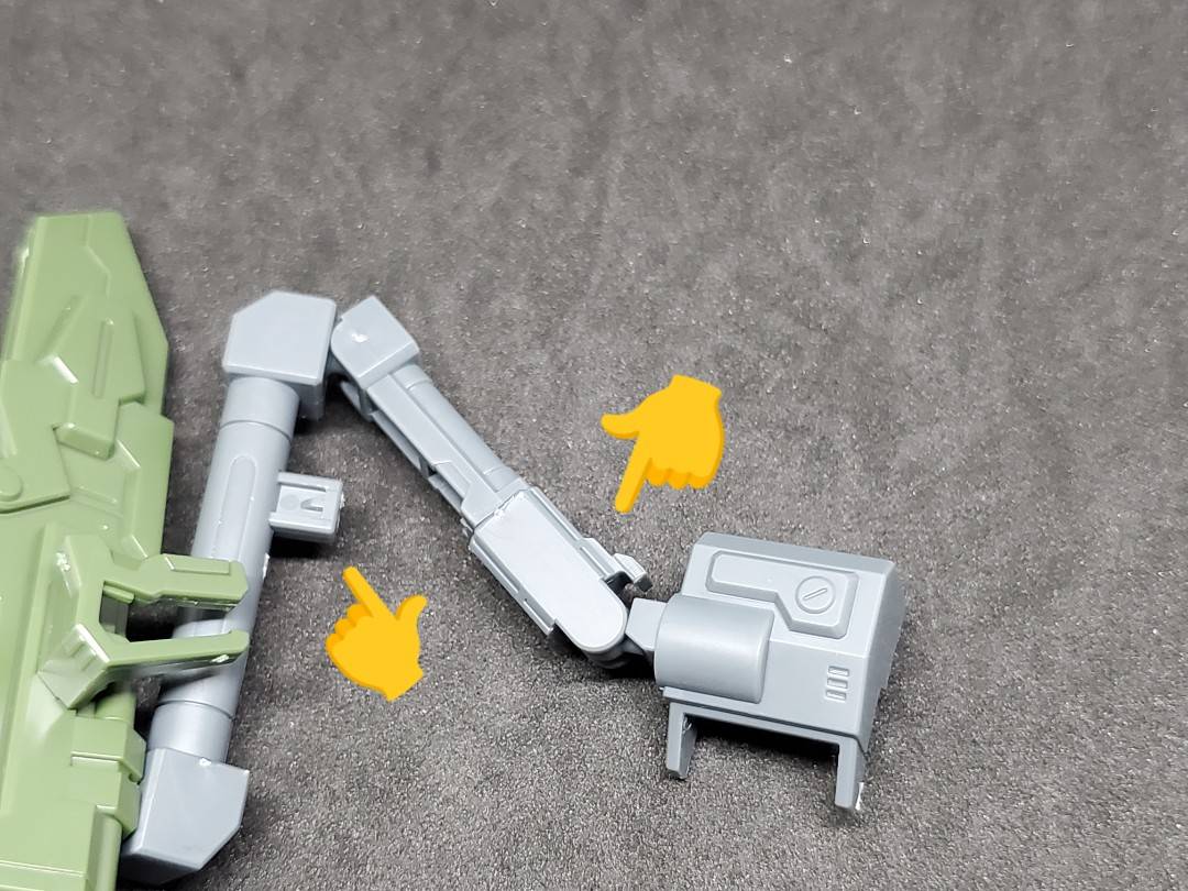 このアームパーツは「ロック構造」になってるので、ランチャーの重さに負けない保持力があります