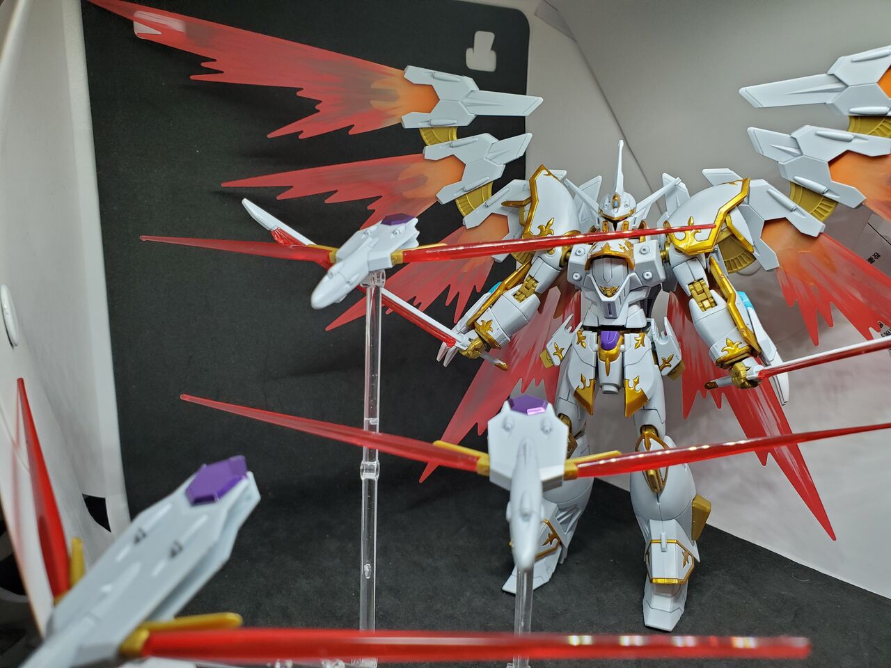 全て展示するには別物売りの「水星の魔女 ウェポンディスプレイベース」が2セット必要です