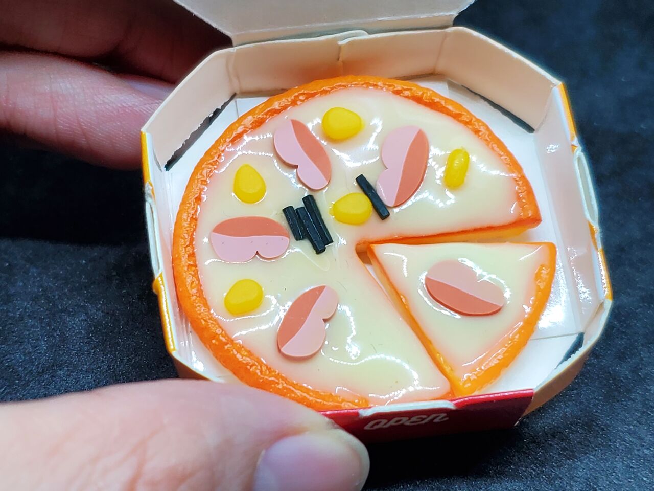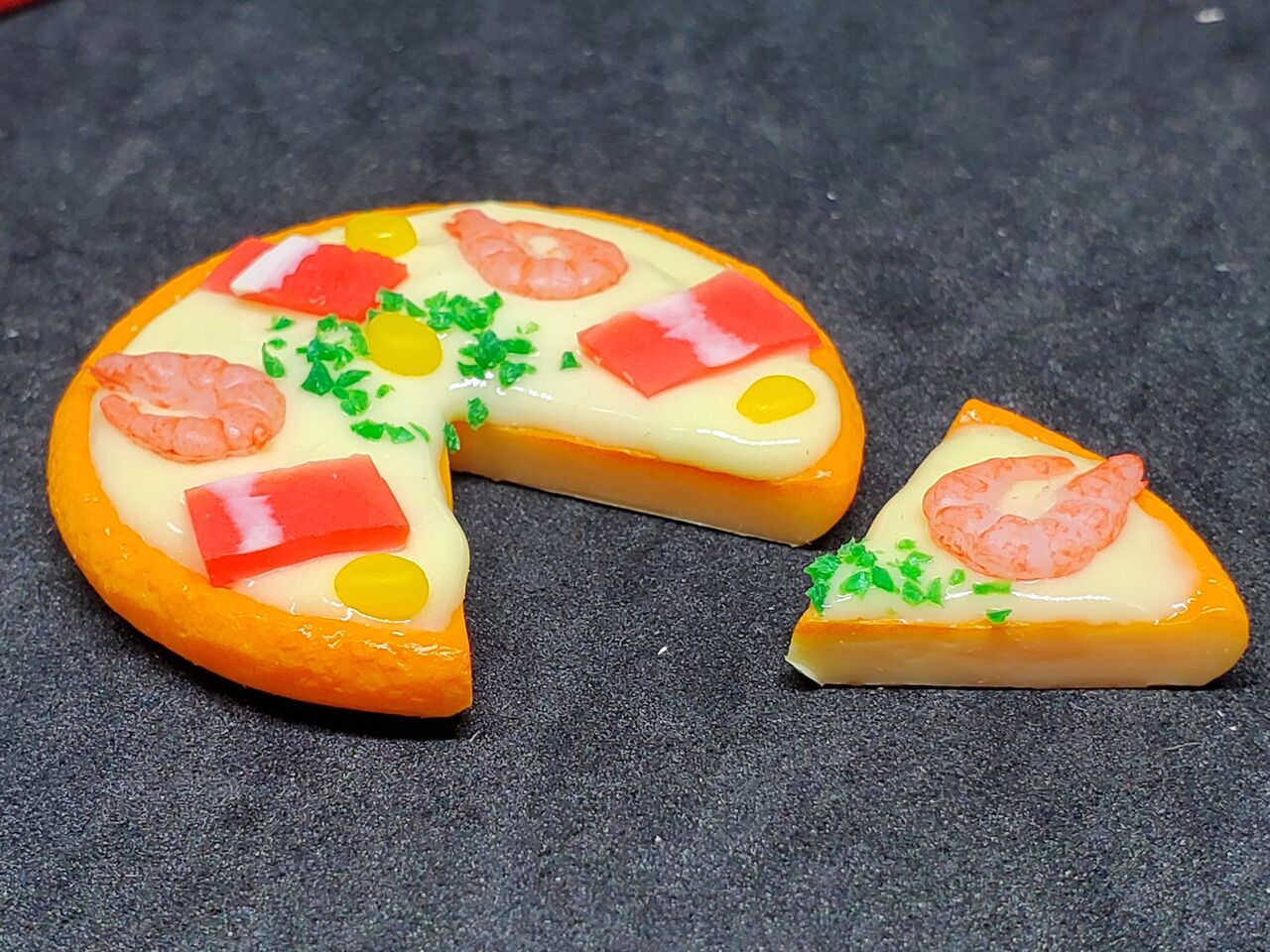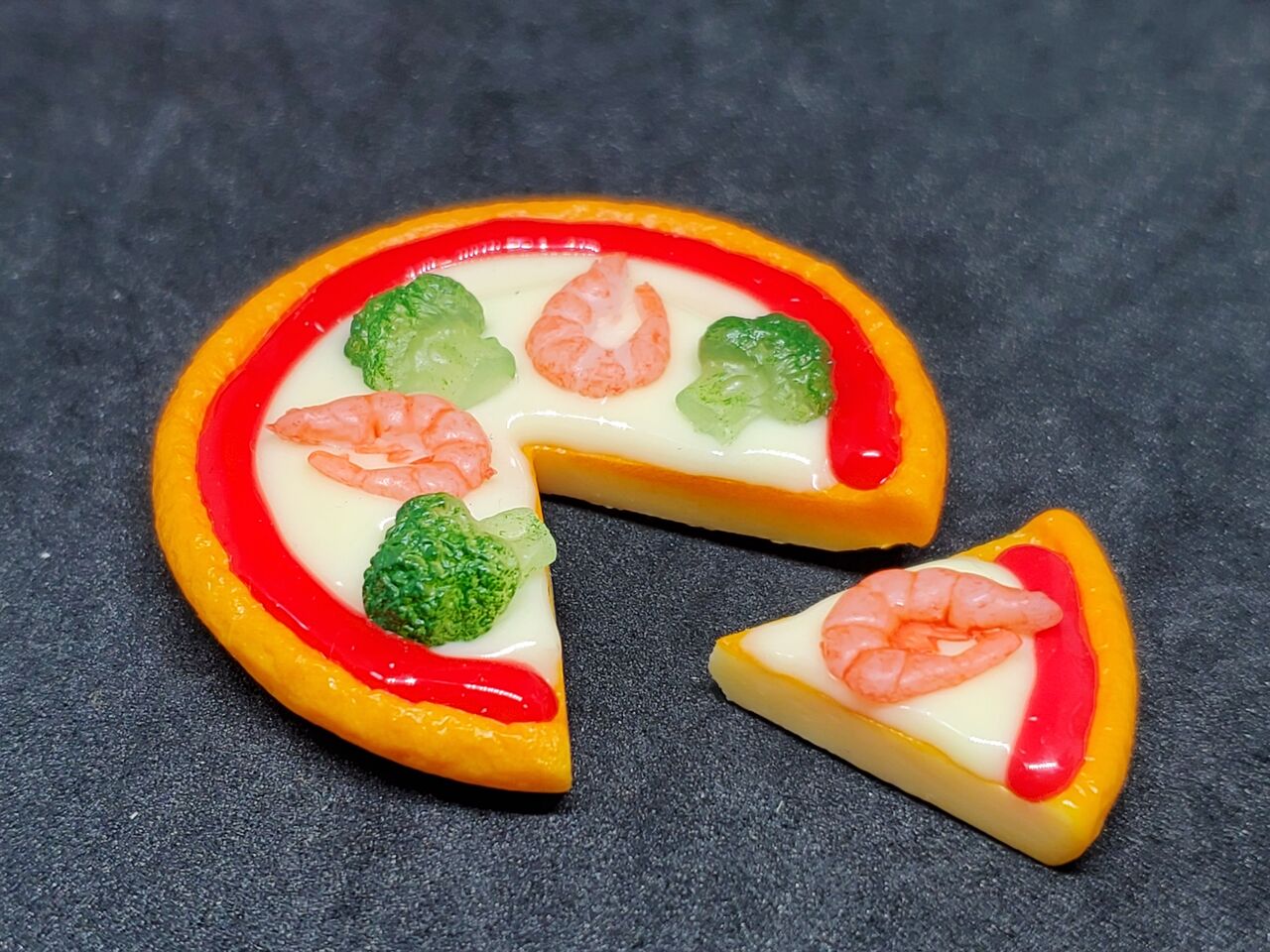 ピザの小物は「一枚一体型」が多く、切れてるピザは新しく感じました