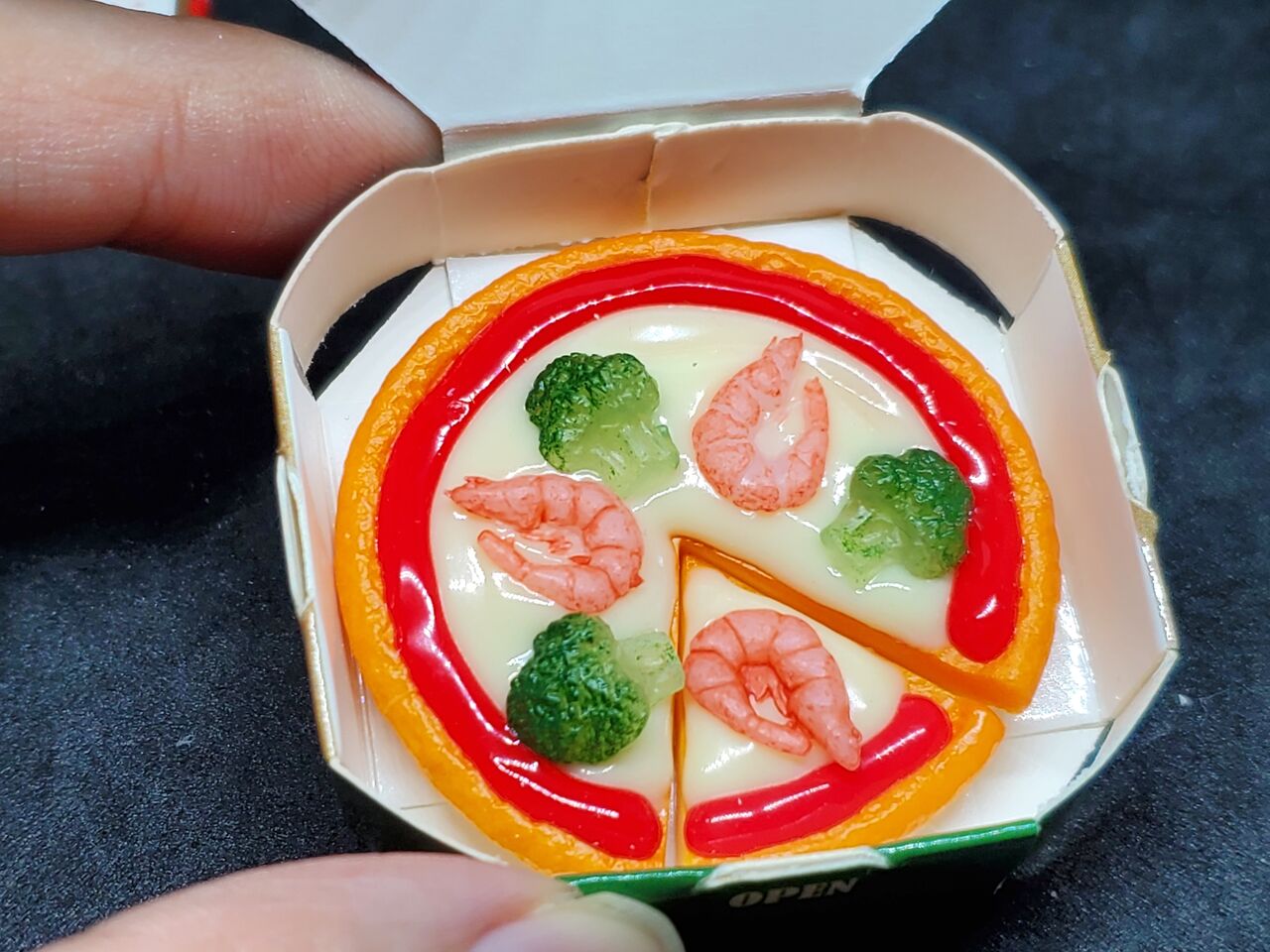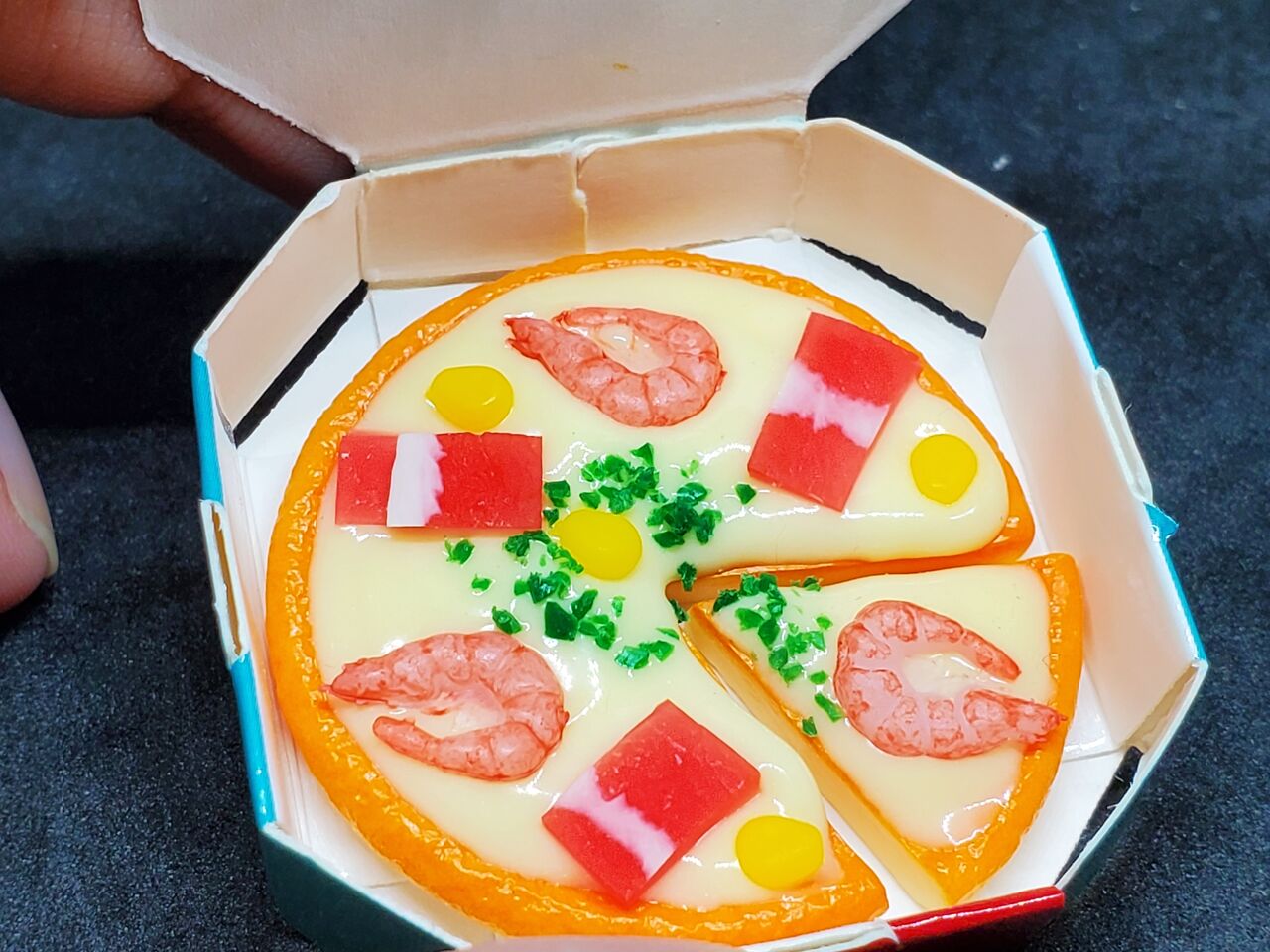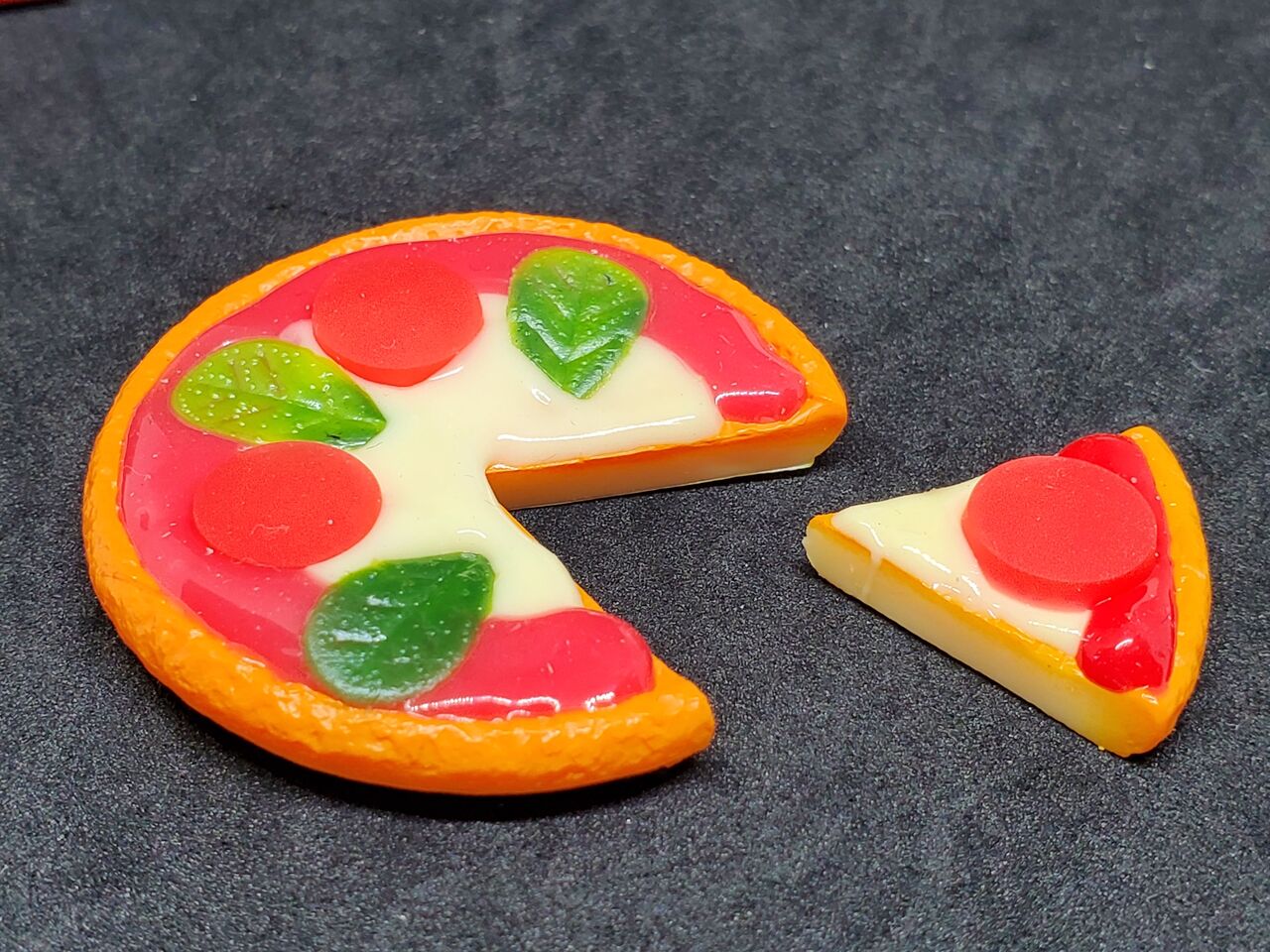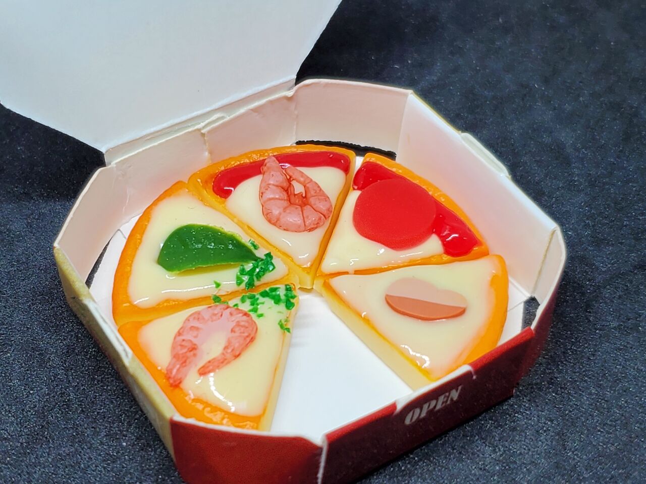 ピザの小物は「一枚一体型」が多く、切れてるピザは新しく感じました