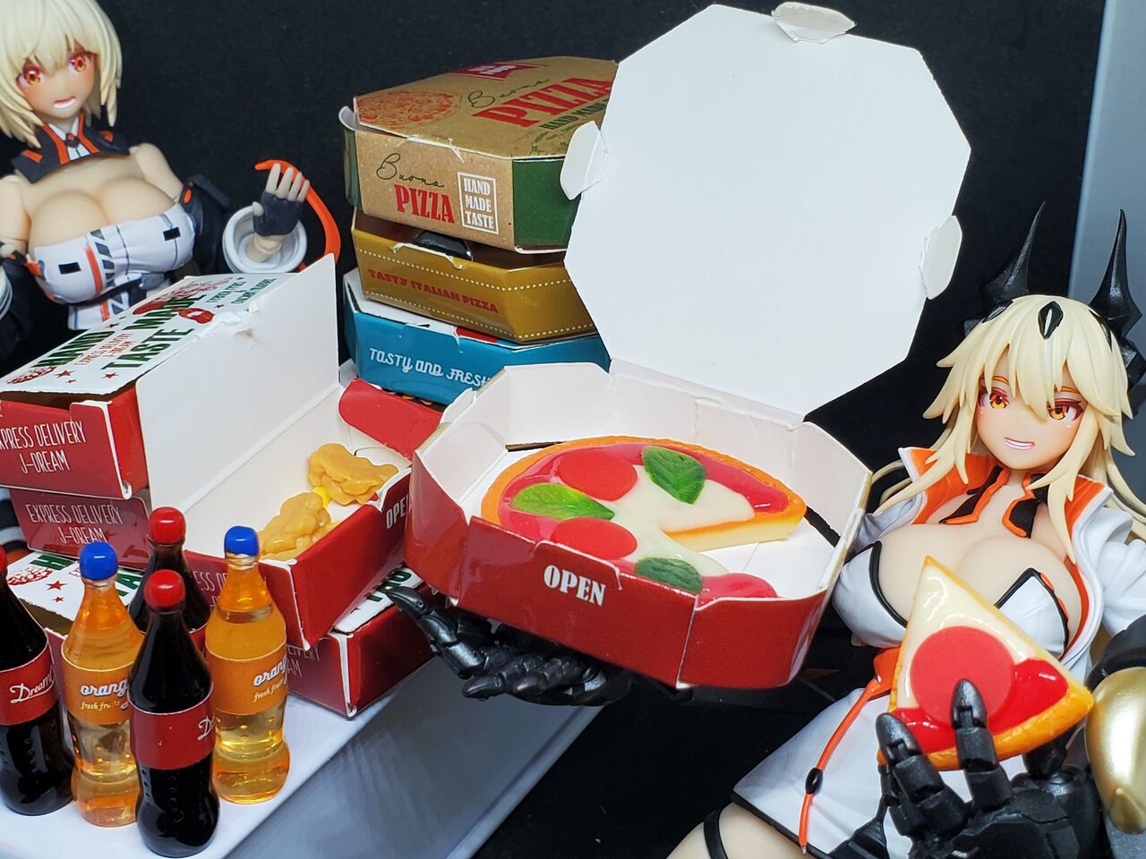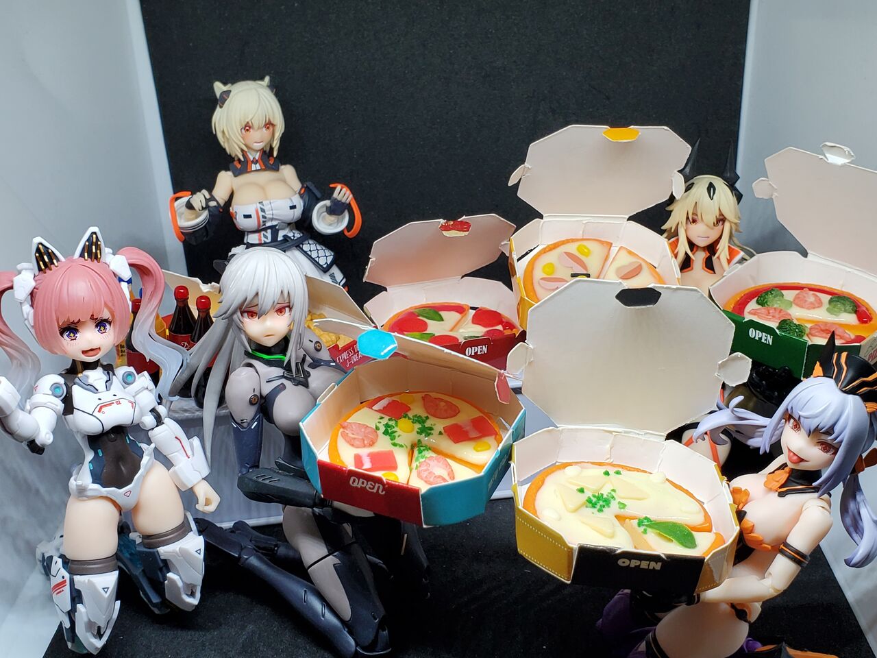 並べるフィギュアを増やせば「ピザパーティー」も可能です