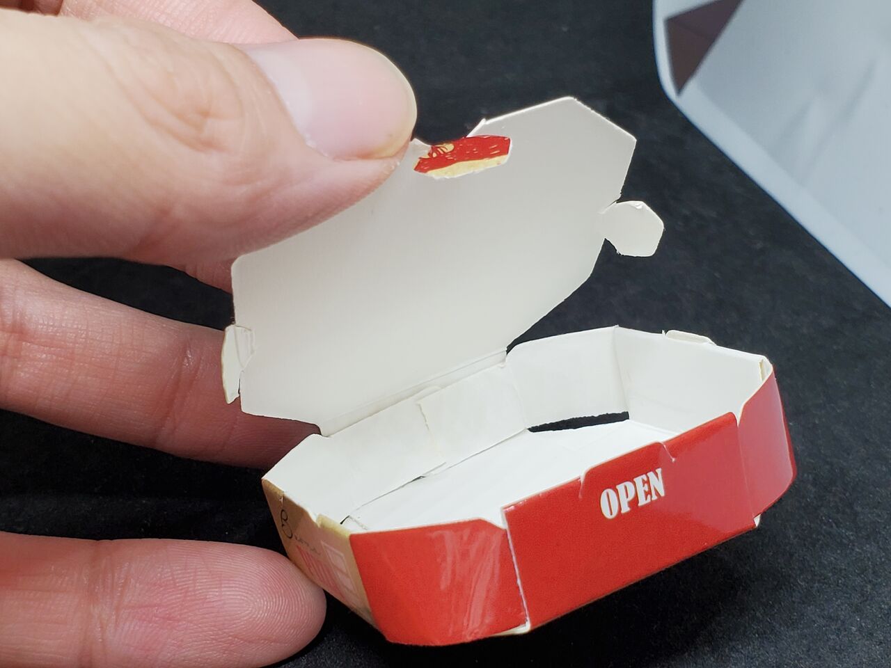 箱入りのピザで、蓋部分は千切れやすいです