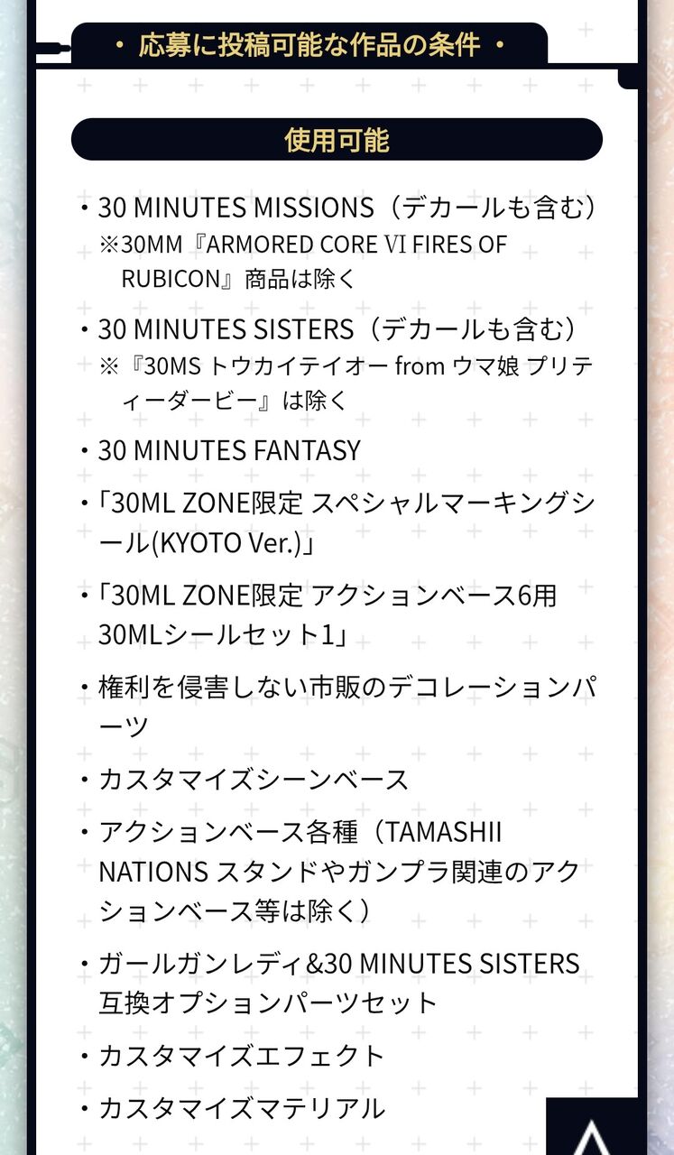 30MMなら「カスタマイズミッション」30MSな「バトルギアコンテスト」といったイベントには参加できなくなります