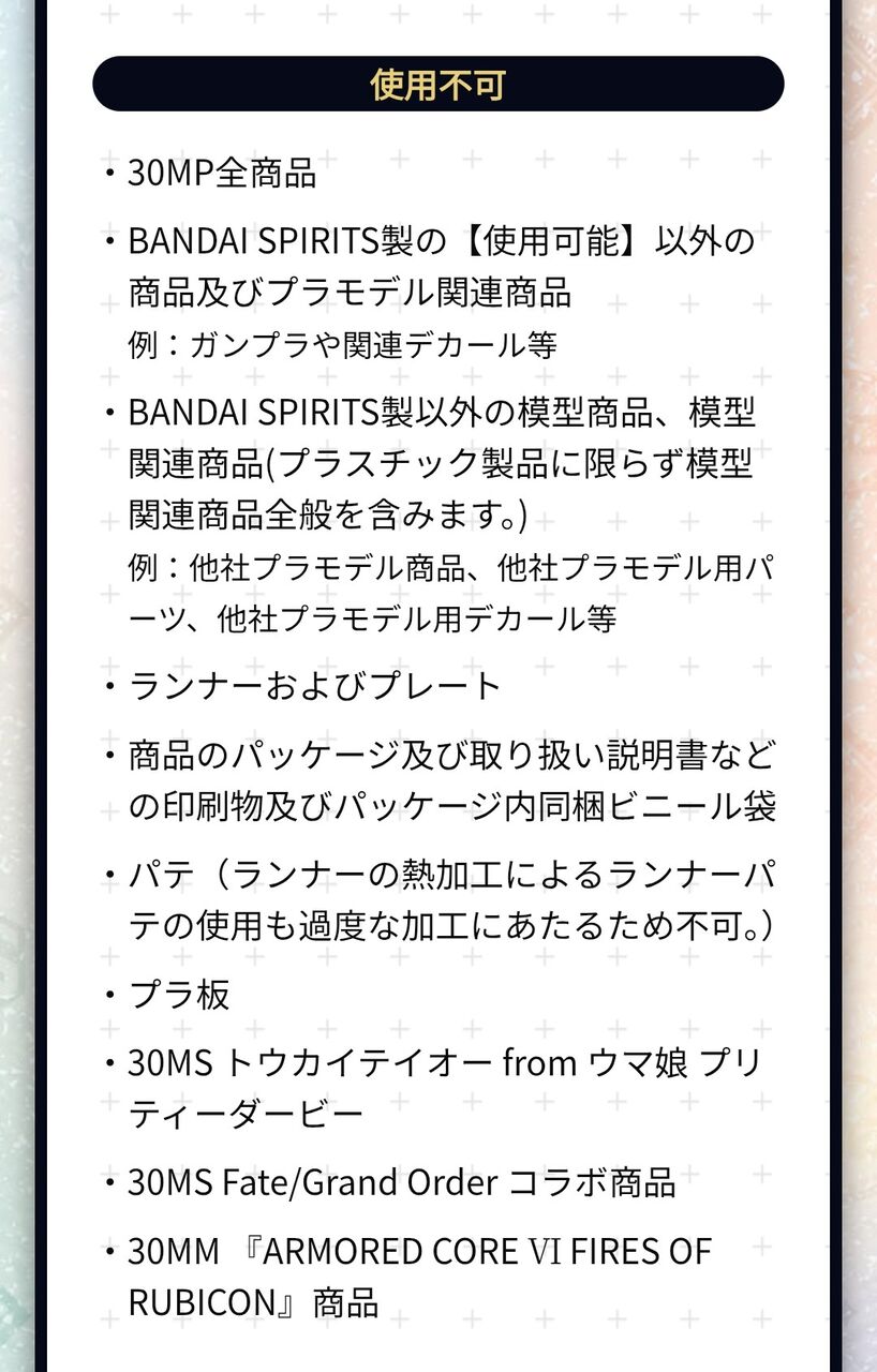 対象外のプラモも様々あり、バンダイから発売されてるコラボ系の30MLは使用できません