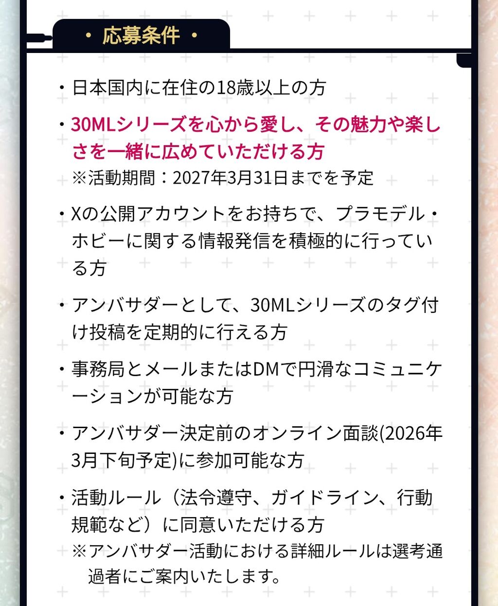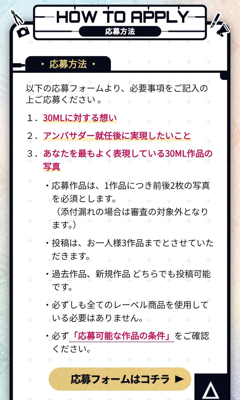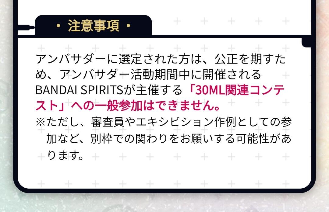 アンバサダー任命された期間中「30ML関連コンテスト」への一般参加はできなくなります